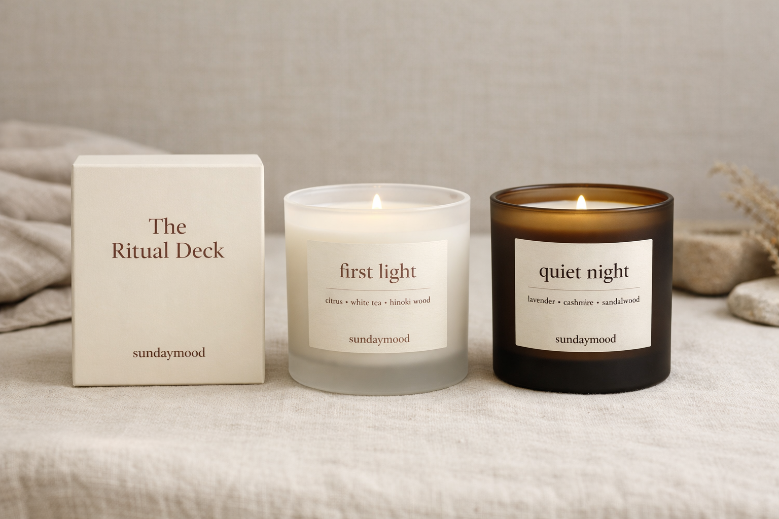 Sundaymood is a modern ritual system for women who crave calm, beauty, and a life that feels gentle again — not because they’re doing less, but because they’re done doing everything. This isn’t self-care for show. It’s a return to rhythm.